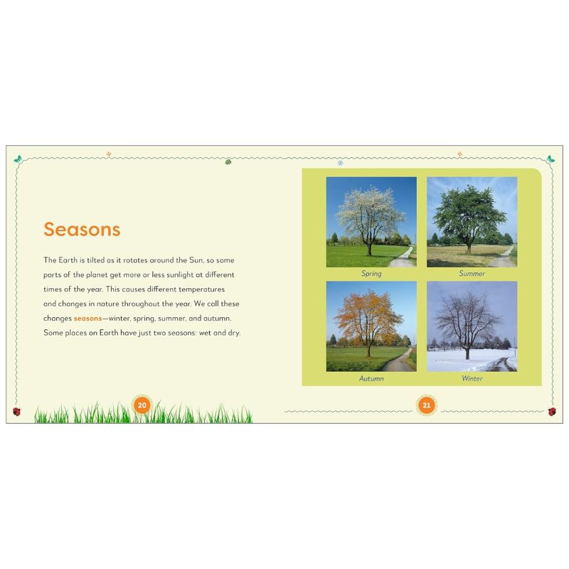 Está repleto de información fascinante y fotos a toda página que enseñan a los niños sobre el clima, las estaciones, las plantas, los animales y mucho más.