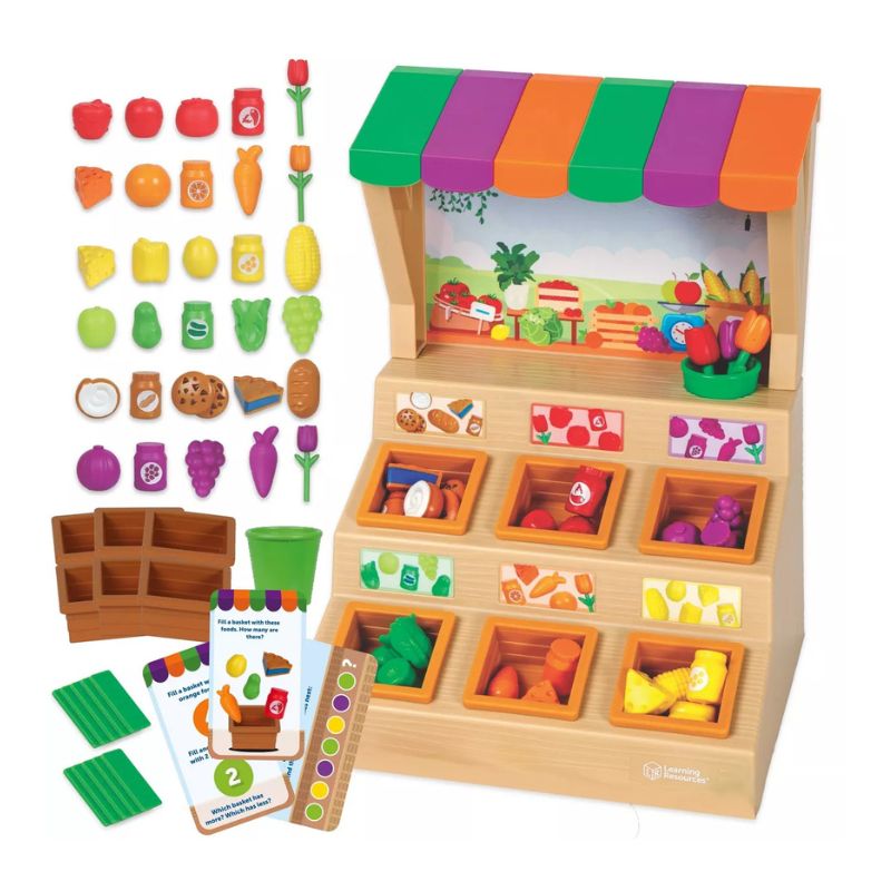 Encontrarás frutas, verduras, mermeladas, productos horneados, flores y mucho más. Además, las monedas realistas desarrollan las habilidades sociales y la motricidad fina de un cliente a la vez.