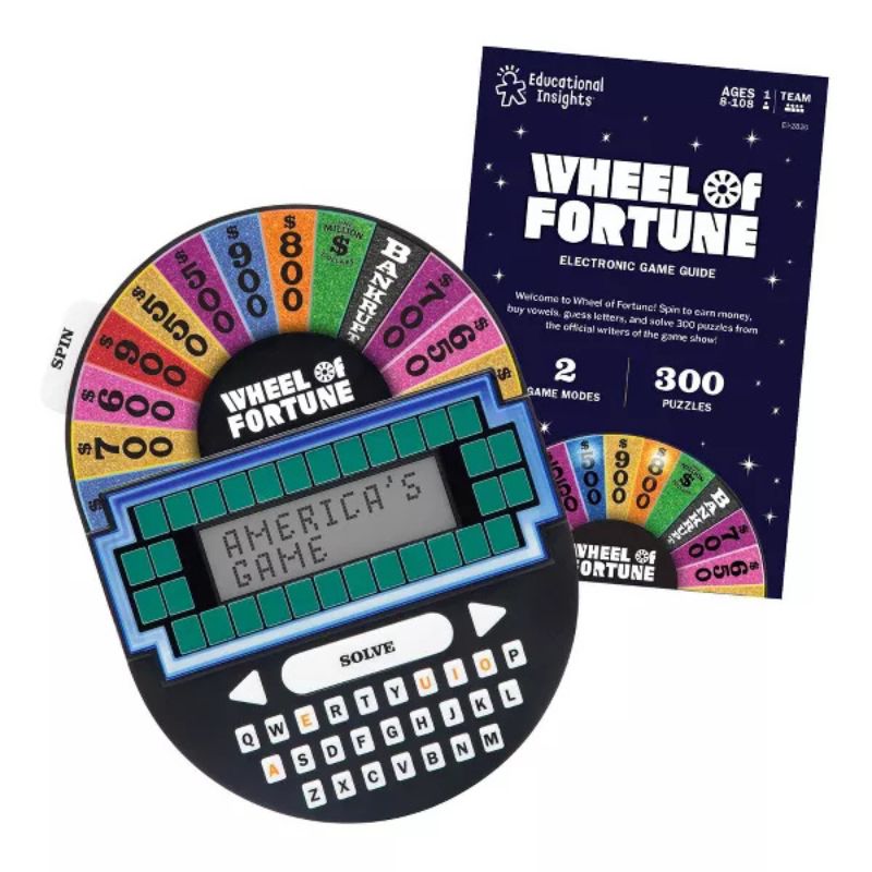 Este juego electrónico portátil para niños y adultos es como un concurso de televisión: gira la ruleta, adivina las letras y resuelve 300 rompecabezas. Un divertido juego de viaje para todas las edades.
