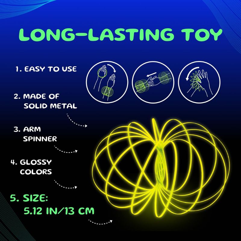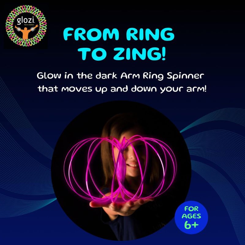 Glozi es un conjunto de anillos cuidadosamente elaborados que, cuando se ponen en movimiento, místicamente cobran vida, girando en una exhibición giroscópica de color, luz oscura y movimiento que es tan divertido como hermoso.
