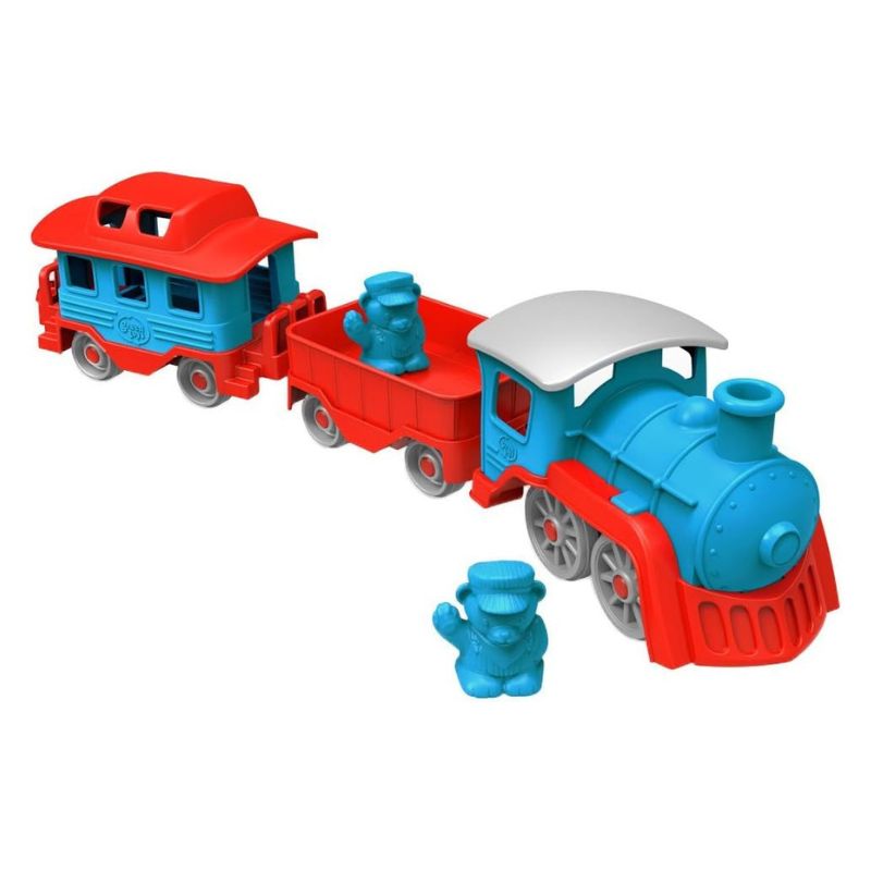 ¡El tren Green Toys sale de la estación! Esta locomotora robusta está lista para atrapar de una aventura eco-impresionante a la siguiente.