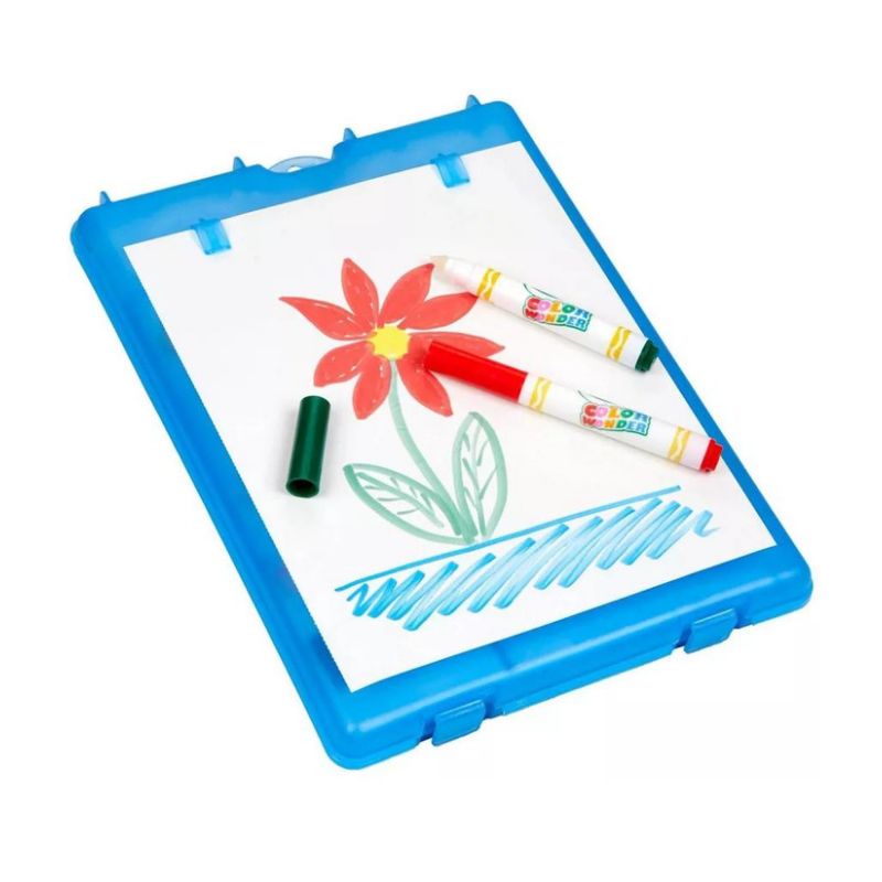 Esta estuche de viaje te da una superficie de escritura portátil y mantiene todos tus materiales Color Wonder listos para cada sesión de colorear mágica.