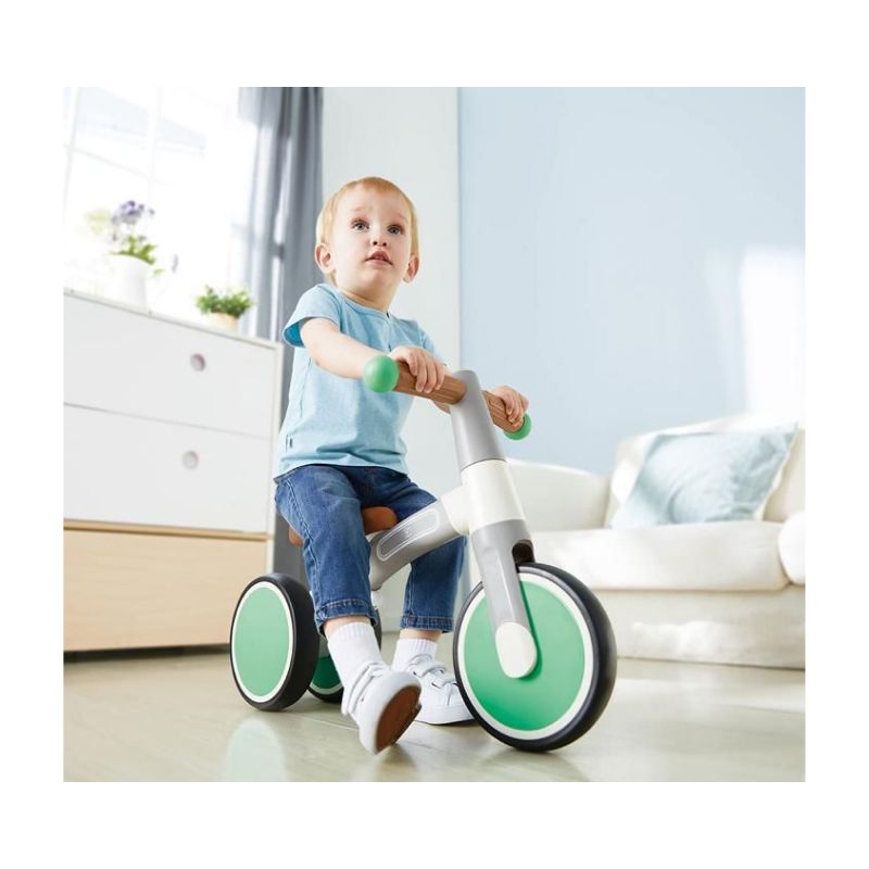 Con un diseño liviano y un asiento ajustable con una superficie suave y cómoda, la bicicleta también cuenta con ruedas flexibles que no rayarán el piso.