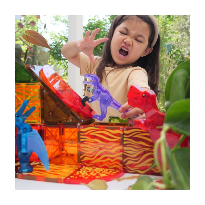 Este juego Dino World presenta cuatro dinosaurios de gran tamaño totalmente magnéticos y mosaicos de colores brillantes con temas volcánicos para un potencial de juego que nunca se extingue.