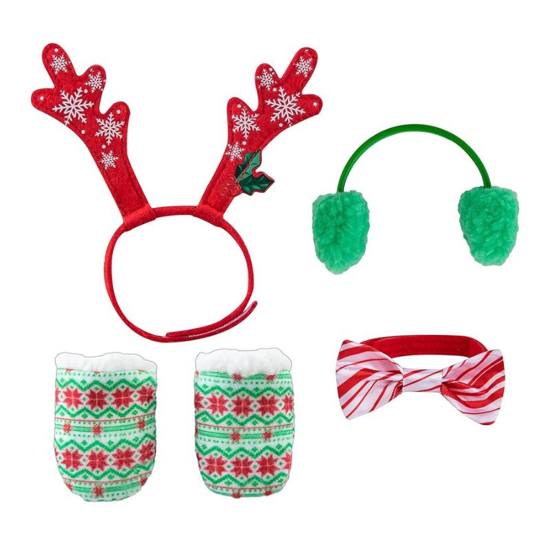 Mantenga abrigado a sus máscotas con el juego de accesorios navideños Elf Pets, diseñado por la Sra. Claus solo para ellos.