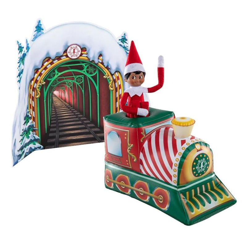 Perfectos para llegadas o salidas, los coloridos Scout Elves en Play Peppermint Train Ride harán que tu amigo Scout Elf lo acompañe.