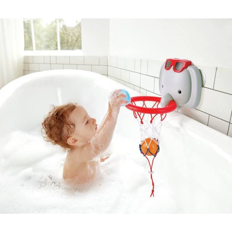 Con el aro de baloncesto en forma de elefante puede comenzar la diversión en el baño.