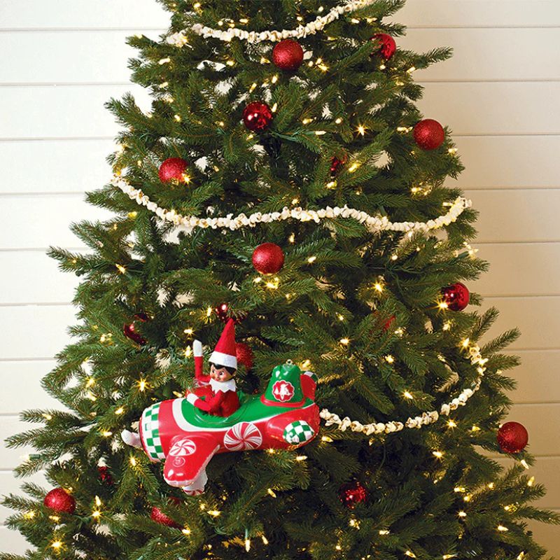 Ya sea suspendidos sobre sus cabezas o volando para un feliz aterrizaje, este colorido avión navideño hará sonreír a todos los elfos exploradores y a su familia.