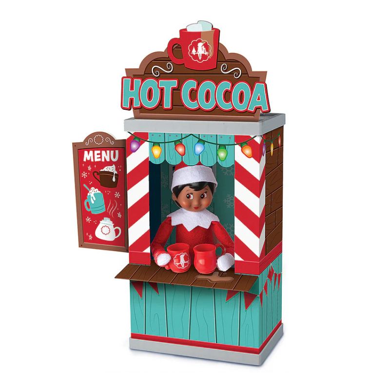 ¡Haz cola para conseguir el dulce favorito de cada elfo en este encantador puesto de chocolate caliente! El puesto de chocolate caliente es una réplica exacta del verdadero puesto del Polo Norte de Santa.