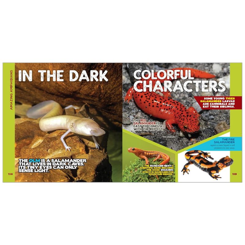 Junto con imágenes a todo color en cada página, encuentra detalles curiosos y maravillosos sobre magníficos mamíferos, bichos espeluznantes, asombrosos anfibios, amigos emplumados y mucho más.