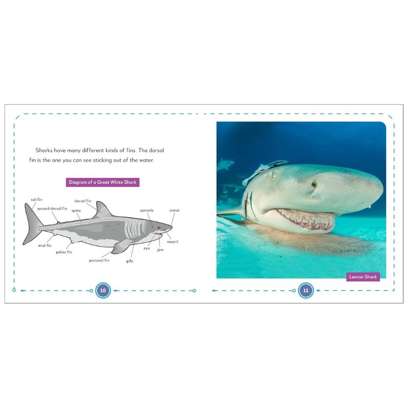 ¡Este libro está repleto de datos, fotos y vocabulario que les da vida a los tiburones para los más pequeños!